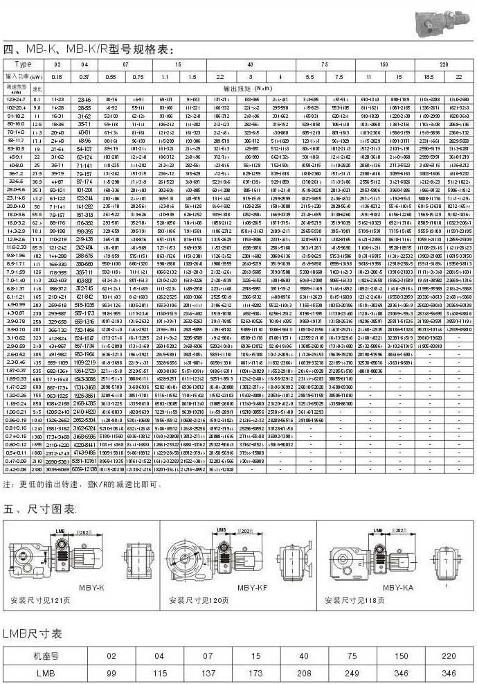 MB-K , MB-K/R型號規(guī)格表尺寸圖表LMB尺寸表