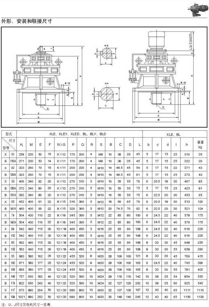 X . B擺線針輪減速機外型圖,安裝和聯結尺寸四 30